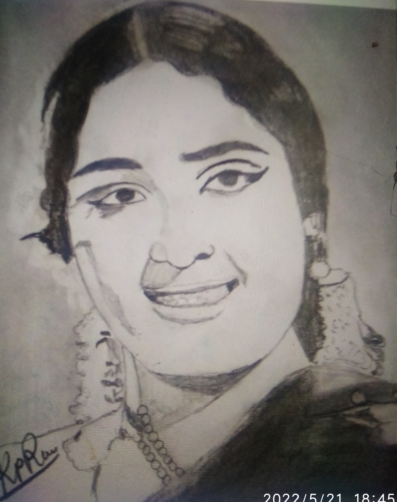 V. JAYASREE, ACTRESS. WIFE OF SHANTARAM .V, AND SINGER PENCIL SKETCH